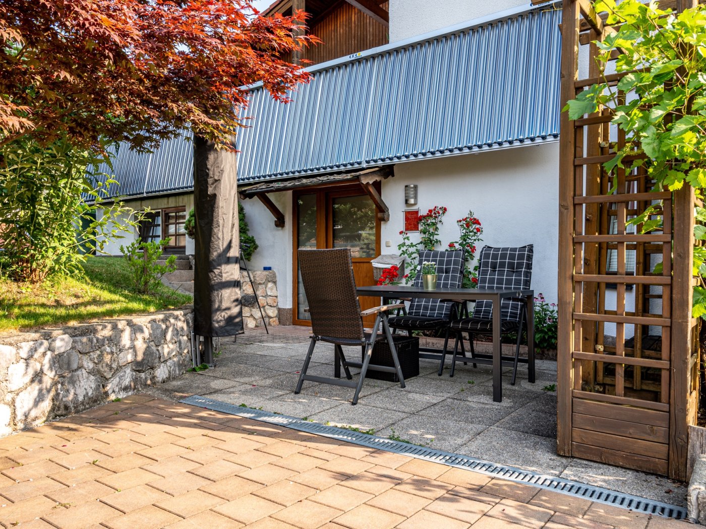Eigener Eingang und Sonnenterrasse mit Möbel.